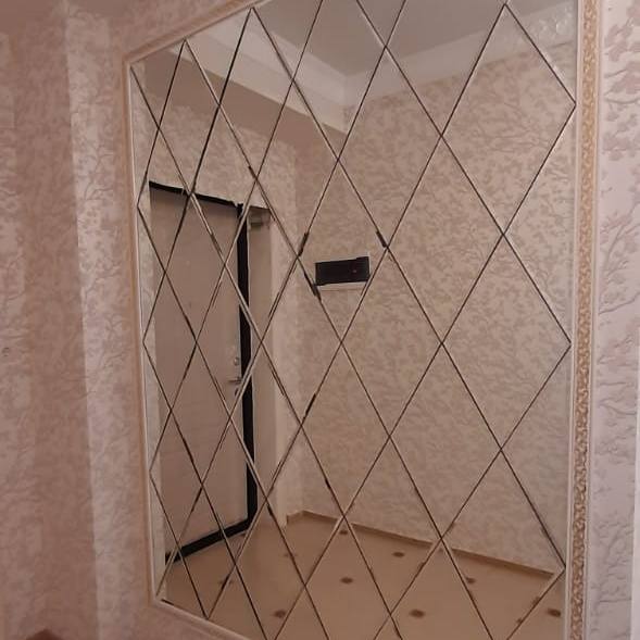 Использована серебристая зеркальная плитка "вытянутый ромб".